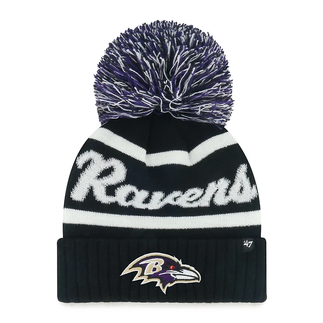 Women's '47 Black Baltimore Ravens Spirited Cuffed Knit Hat with Pom