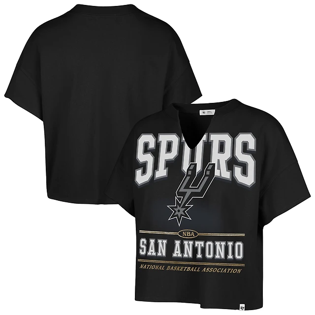 Women's '47 Black San Antonio Spurs Elation Oversized Notch Neck T-Shirt