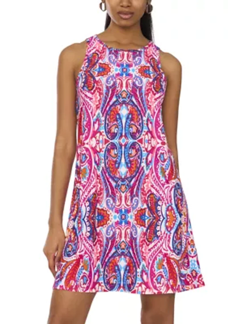 Flaunting a vivid print, this stylish dress from MSK is splashed with vibrant colors for a remarkable look. Keyhole with button closure Crew neck Sleeveless Unlined Imported Product Specifications 35" Material & Care Polyester, spandex Machine washable