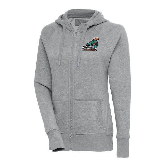 Women's Antigua Heather Gray Coastal Carolina Chanticleers Victory Full-Zip Hoodie