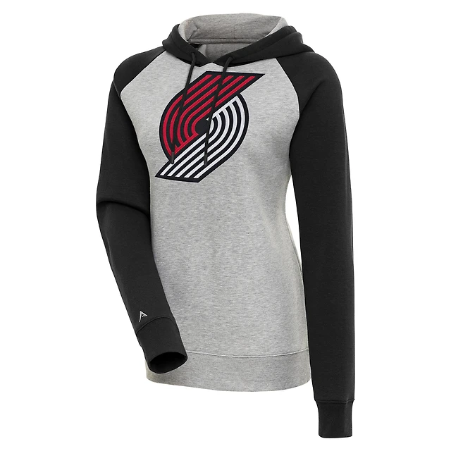 Women's Antigua Heather Gray/Black Portland Trail Blazers Victory Raglan Sleeve Pullover Hoodie
