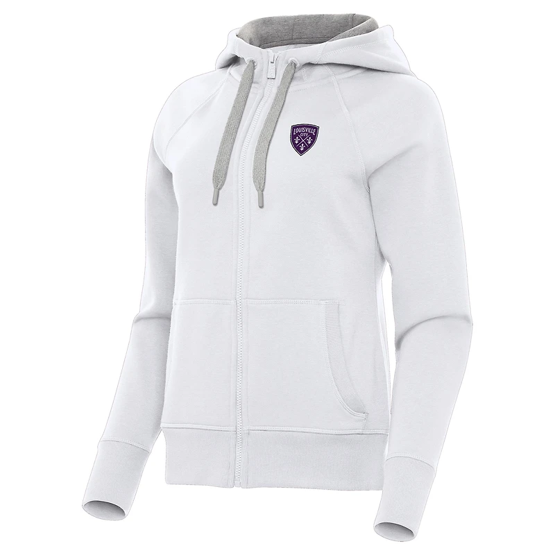 Women's Antigua White Louisville City FC Victory Raglan Fleece Full-Zip Hoodie in Chattanooga, TN