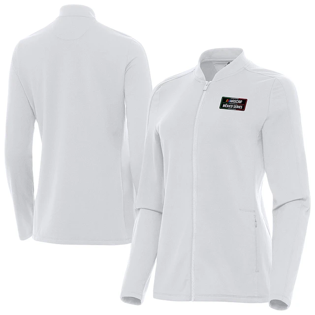 Women's Antigua White NASCAR Mexico Series Race Continual Full-Zip Jacket