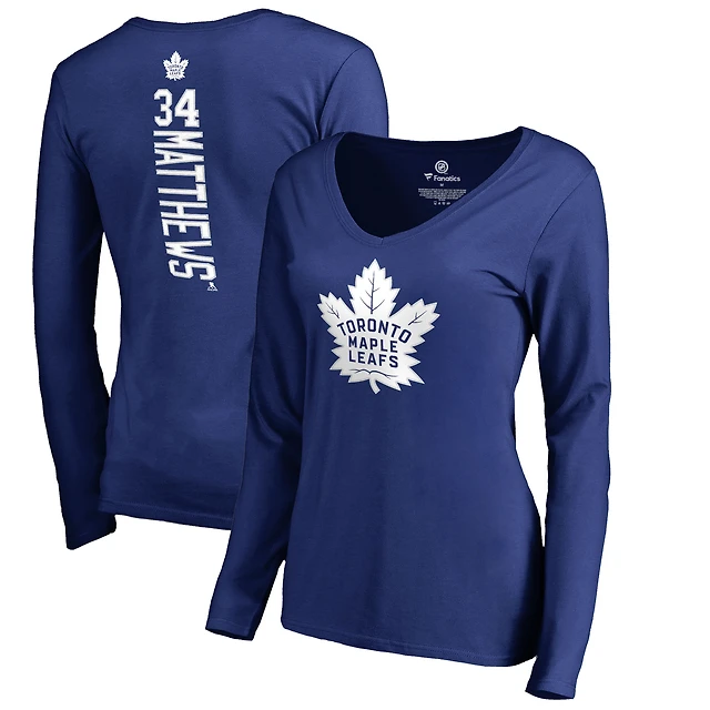 Women's Auston Matthews Blue Toronto Maple Leafs Backer Name & Number Slim Fit Long Sleeve V-Neck T-Shirt