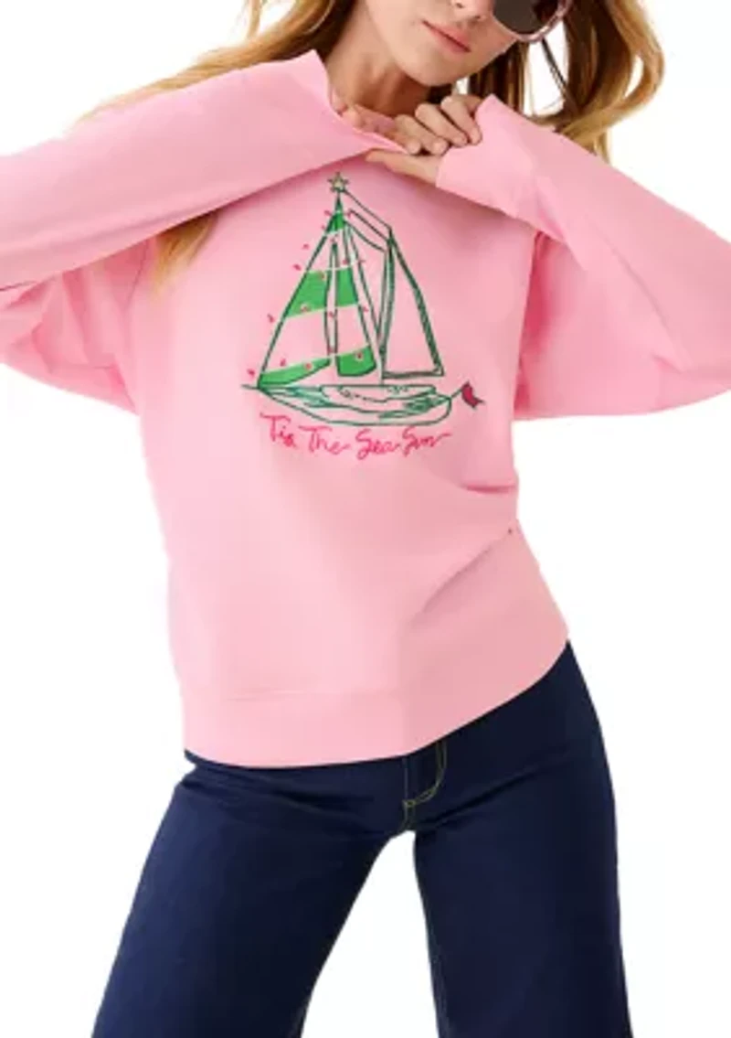 A Lilly Pulitzer® favorite! Ballad is a relaxed fit, oversized sweatshirt made from extra soft beachcomber terry. Custom front graphic artwork. Pullover Crew neck Long sleeves Imported Product Specifications 26" L Material & Care 100% cotton Hand wash