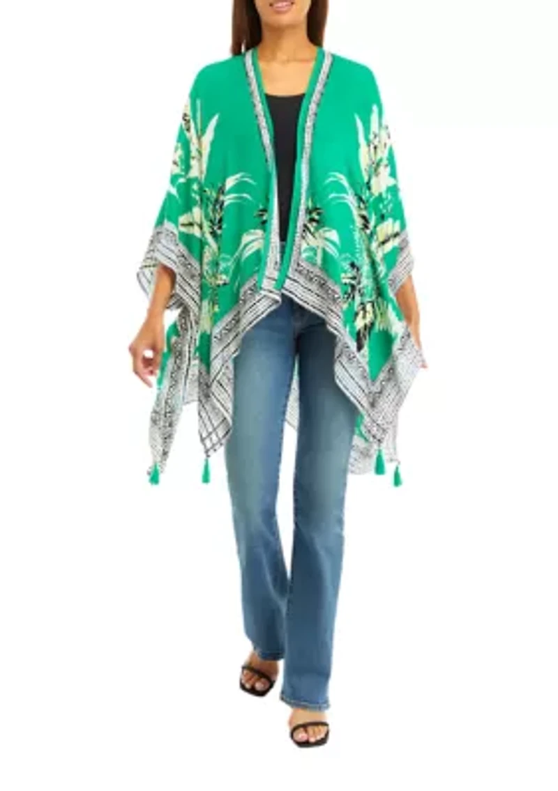 Add a tropical flair to any outfit with this topper from Vince Camuto. Open front 3/4 kimono sleeves Imported Material & Care Viscose Hand wash