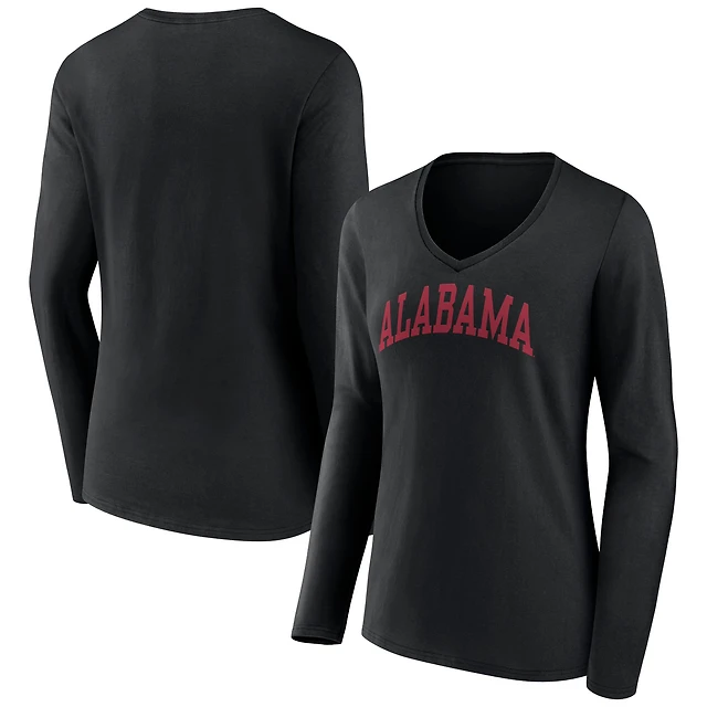 Women's Black Alabama Crimson Tide Basic Arch Long Sleeve V-Neck T-Shirt