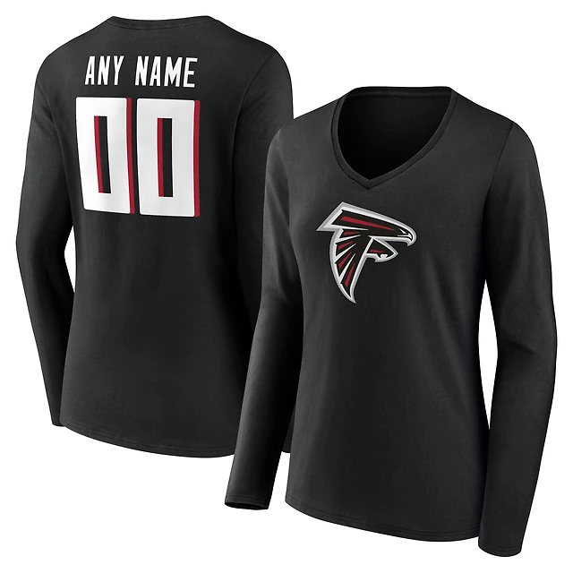 Women's Black Atlanta Falcons Team Authentic Custom Name & Number Long Sleeve V-Neck T-Shirt