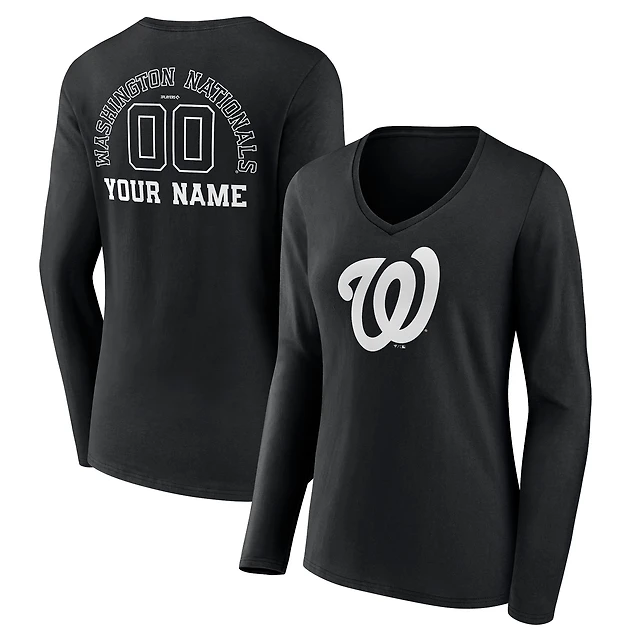 Women's Black Washington Nationals Monochrome Personalized Name & Number Long Sleeve V-Neck T-Shirt