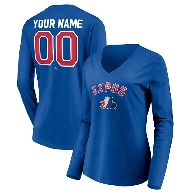 Women's Blue Montreal Expos Cooperstown Collection Personalized Winning Streak Long Sleeve V-Neck T-Shirt