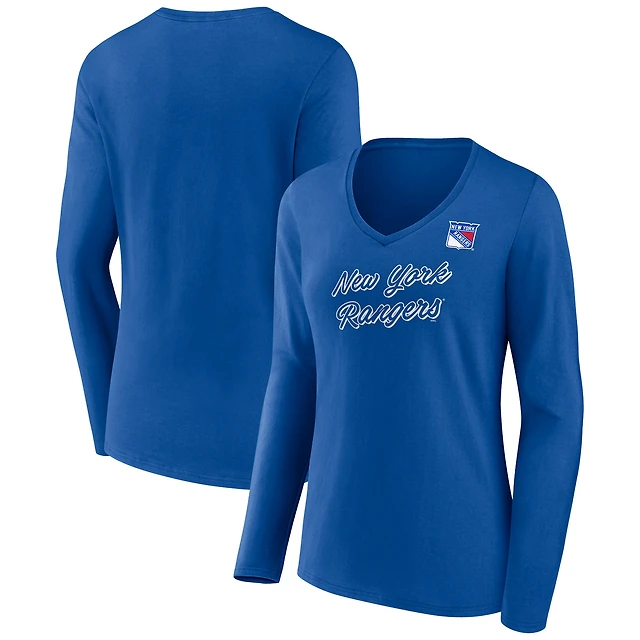 Fanatics Blue New York Rangers Frozen Long Sleeve Notch Neck T-Shirt