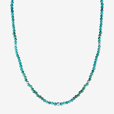 Womens Blue Turquoise Sterling Silver 16 Inch Beaded Necklace