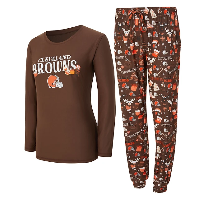 Women's Concepts Sport Brown Cleveland Browns Chesnut Long Sleeve T-Shirt and Pant Sleep Set