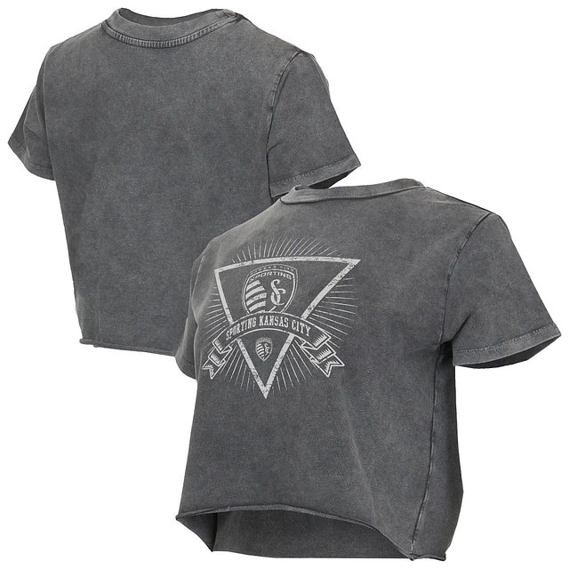 Women's Concepts Sport Charcoal Sporting Kansas City Distressed Market Cropped Top