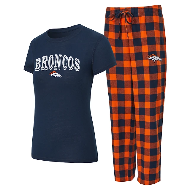Women's Concepts Sport Navy/Orange Denver Broncos Avondale T-Shirt & Pants Flannel PJ Set