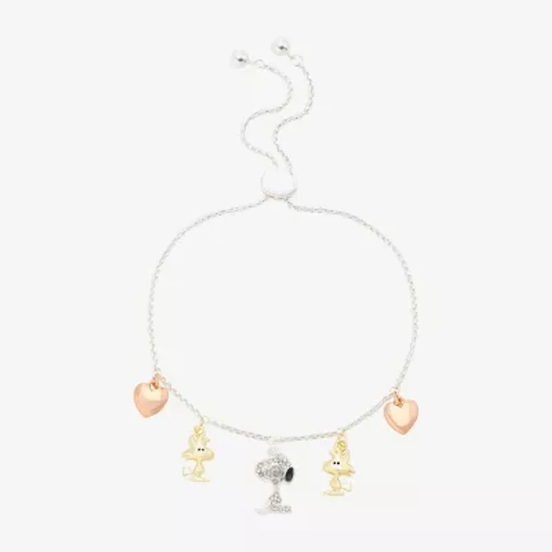 Womens Crystal 10K Gold Over Brass 14k Rose Gold Over Brass Heart Peanuts Snoopy Charm Bracelet