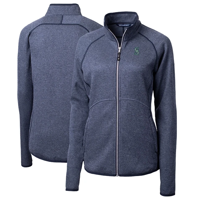 Women's Cutter & Buck Heathered Navy Seattle Mariners Mainsail Sweater-Knit Full-Zip Jacket