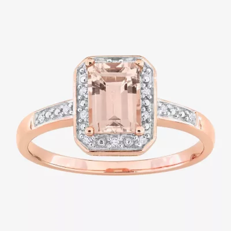Womens Diamond Accent Genuine Pink Morganite 18K Rose Gold Over Silver Halo Cocktail Ring