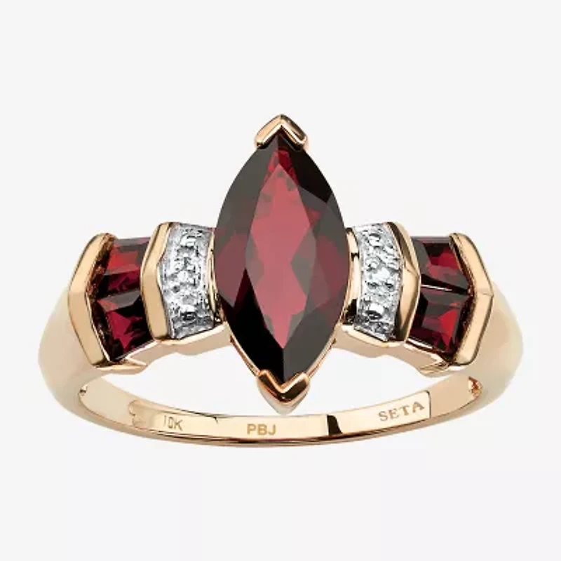Womens Diamond Accent Genuine Red Garnet 10K Gold Marquise Cocktail Ring