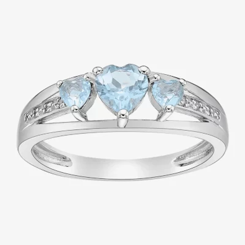 Womens Diamond Accent Lab Created Blue Aquamarine Sterling Silver 3-Stone Side Stone Cocktail Ring