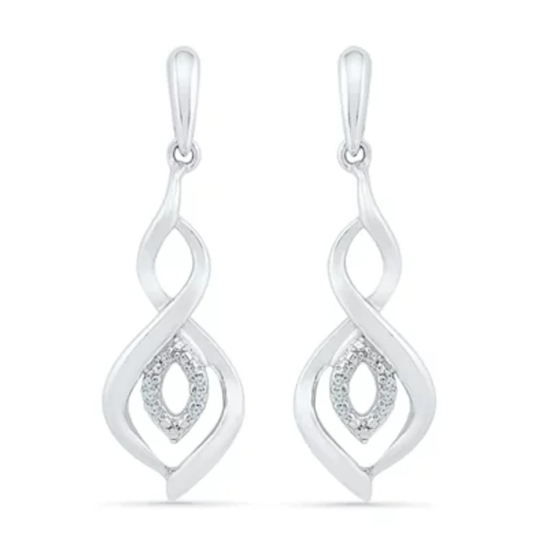 Womens Diamond Accent Natural White Diamond Sterling Silver Drop Earrings