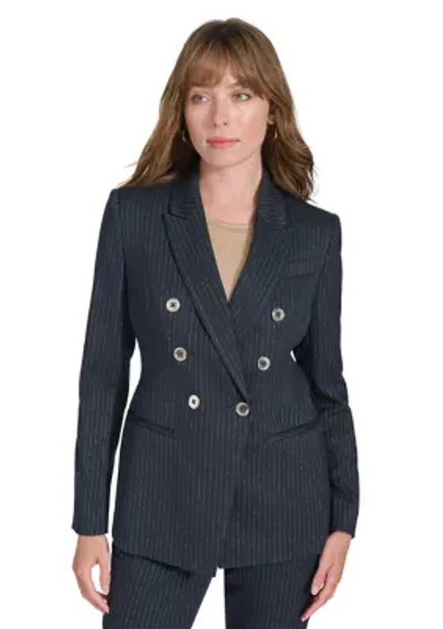 Brushed Pinstripe Tailored Double Breasted Blazer