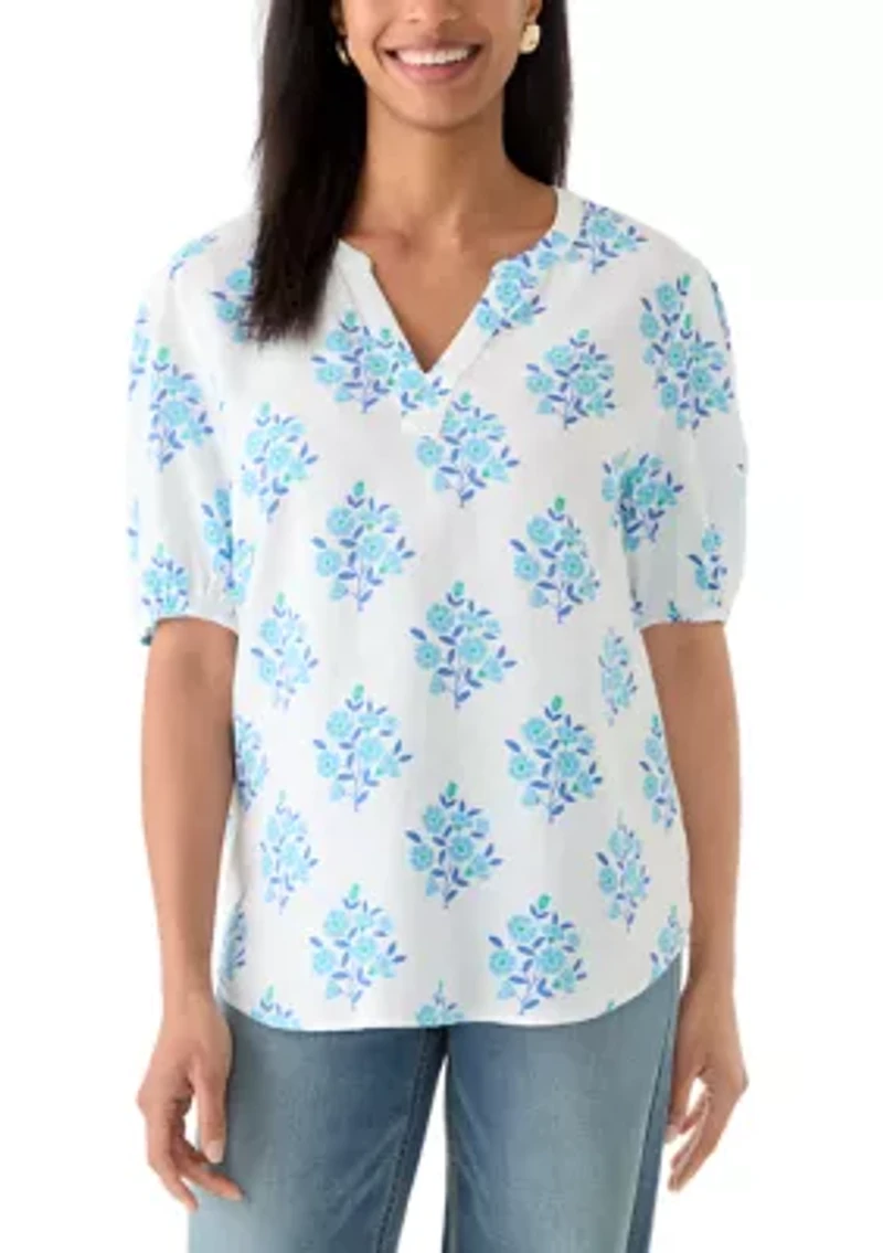 Women's Elbow Sleeve Linen Popover Top