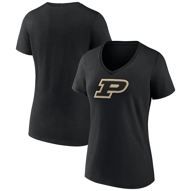 Women's Fanatics Black Purdue Boilermakers Logo V-Neck T-Shirt