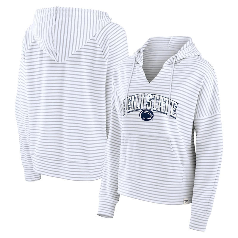 Women's Fanatics White/Gray Penn State Nittany Lions Arch Logo Striped Notch Neck Pullover Hoodie in Chattanooga, TN