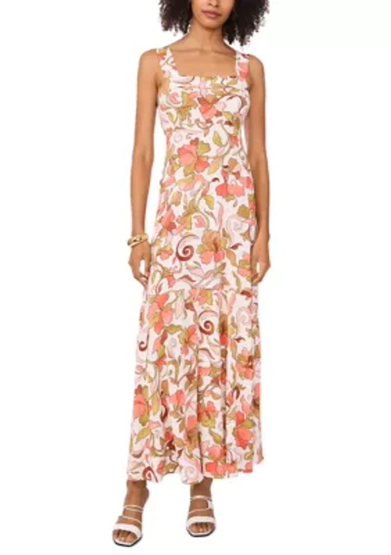 Gorgeous prints and lively colors magnify the feminine allure of this sleeveless square-neck dress from Vince Camuto. Style it with heels or wedges for an elevated look. Pullover Square neck Sleeveless Unlined Imported Product Specifications 52.5" L Material & Care Viscose Machine washable
