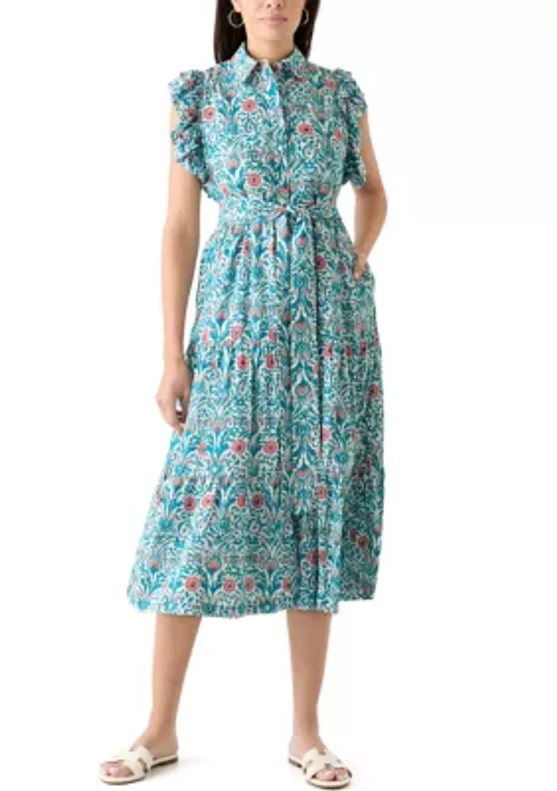 Complete with fluttery sleeves, this dress from Crown & Ivy™ showcases a stunning floral print, collar, and belted waistline. Button closure Collar Short flutter sleeves Unlined Imported Belk Exclusive Product Specifications 47.5" L Material & Care Modal Machine washable