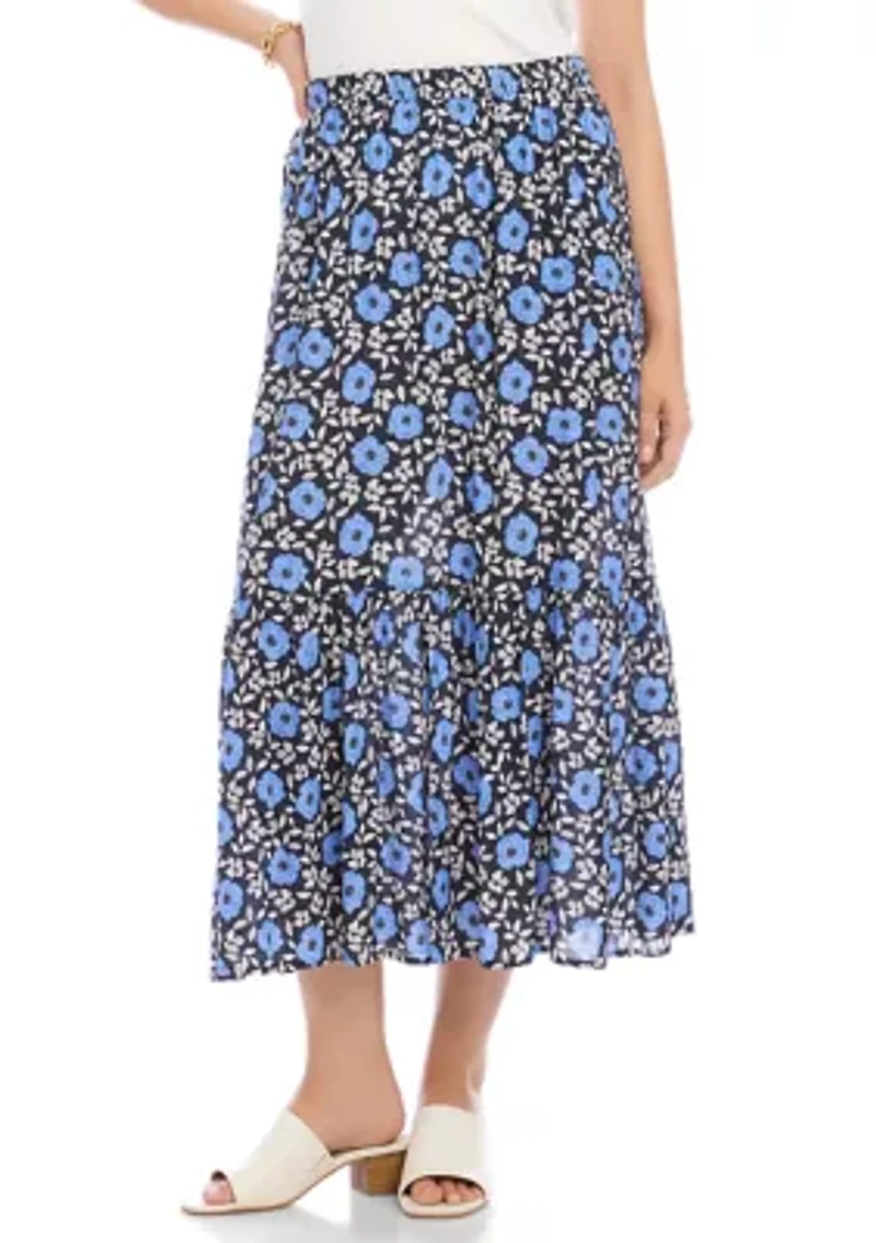 This Karen Kane feminine midi skirt features a front slit and a tiered design for effortless movement. Finished with a pull-on elastic waist for a comfortable, flattering fit, this versatile style pairs perfectly with everything from knits to lightweight tops. Pullover Unlined Imported Product Specifications Midi length 35.5" inseam (Size M) Material & Care 51% viscose ecovero, 49% viscose Machine washable