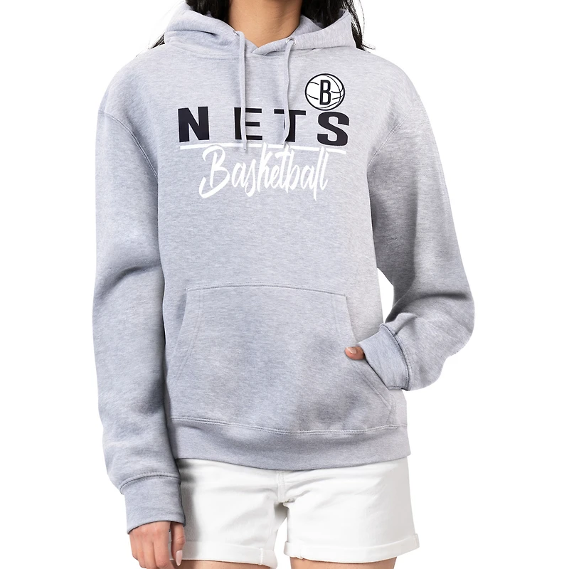 Women's G-III 4Her by Carl Banks Heather Gray Brooklyn Nets Graphics Fleece Pullover Hoodie in Chattanooga, TN