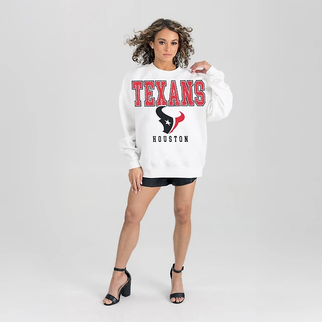 Women's Gameday Couture White Houston Texans Sunday Drives Oversized Crewneck Pullover Sweatshirt