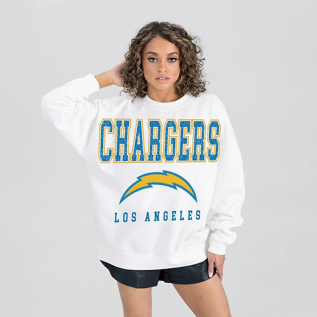 Women's Gameday Couture White Los Angeles Chargers Sunday Drives Oversized Crewneck Pullover Sweatshirt