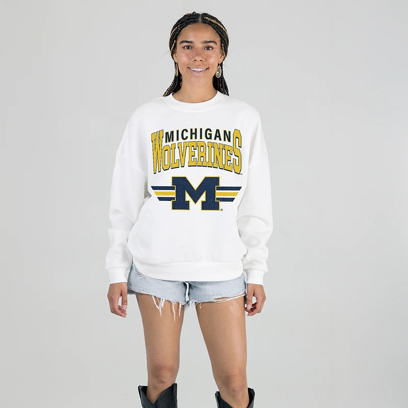 Women's Gameday Couture White Michigan Wolverines Oversized Premium Fleece Sweatshirt in Chattanooga, TN