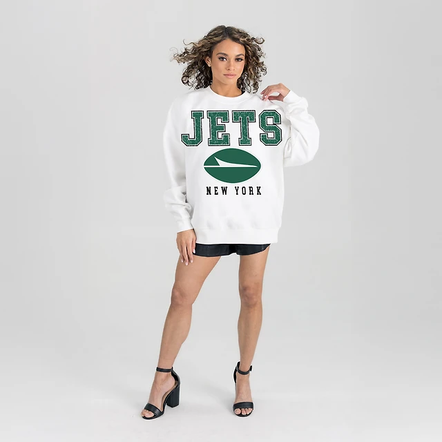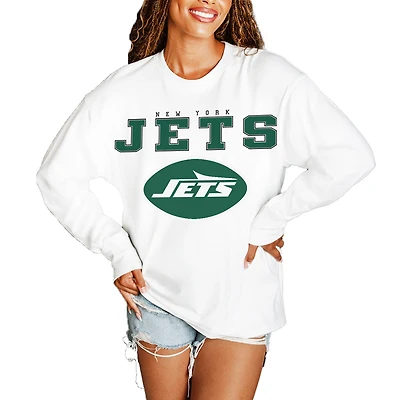 Women's Gameday Couture White New York Jets Sunday Drives Oversized Crewneck Pullover Sweatshirt