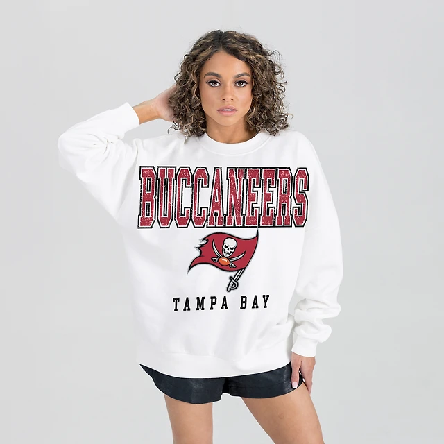 Women's Gameday Couture White Tampa Bay Buccaneers Sunday Drives Oversized Crewneck Pullover Sweatshirt