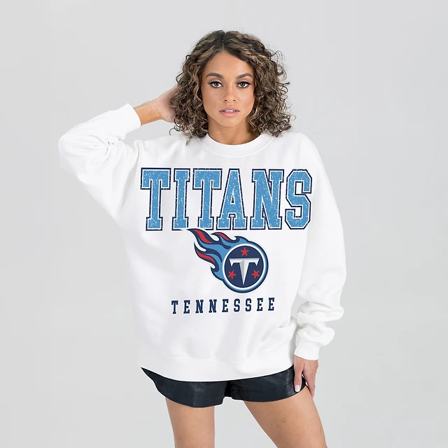 Women's Gameday Couture White Tennessee Titans Sunday Drives Oversized Crewneck Pullover Sweatshirt
