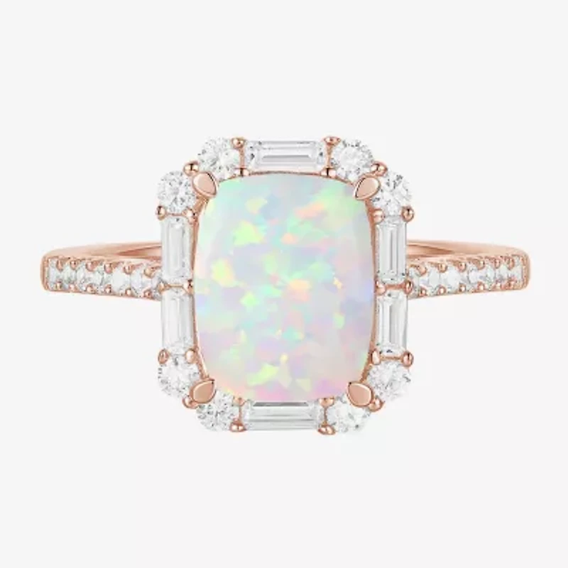 This women's gemstone cocktail ring is the perfect way to make a style statement. Crafted with lustrous sterling silver it is available in white and rose gold tones, dazzling with a cushion-cut blue sapphire or opal as the main attraction, and 29 Lab Grown white sapphires.