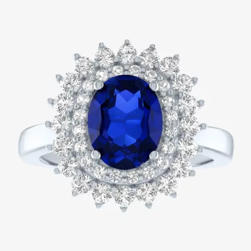 Womens Gemstone Sterling Silver Oval Halo Cocktail Ring