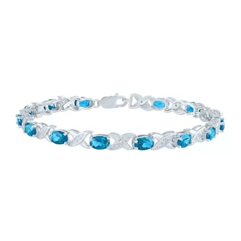 Womens Genuine Blue Topaz Sterling Silver Tennis Bracelet