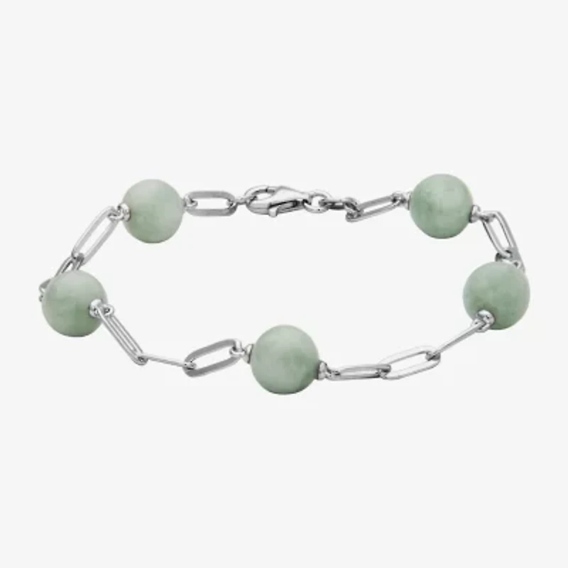 Womens Genuine Green Jade Sterling Silver Strand Bracelet