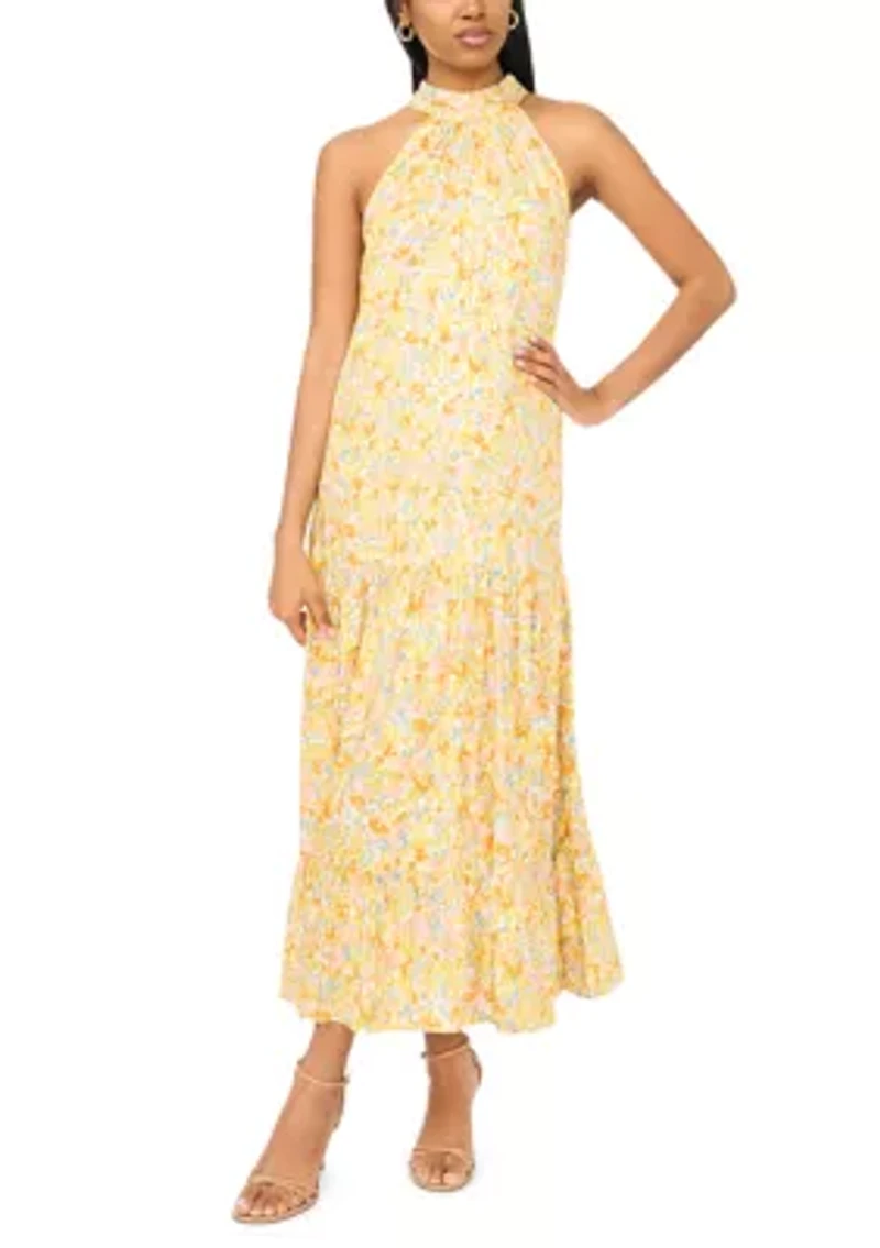 This MSK dress features a breezy silhouette crafted from soft, lightweight challis fabric for effortless comfort. The tie-closure halter neckline and flowing maxi length create a flattering, feminine look perfect for sunny days and special occasions. Tie closure Halter neck Sleeveless Imported Product Specifications 56" L Material & Care Rayon Hand wash