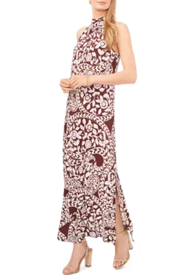 Delicate feminine floral prints and a slit-leg design add a lovely finish to this IVY ROAD dress. Keyhole with button closure Halter neck Sleeveless Unlined Imported Product Specifications 50.5" L Material & Care Polyester, spandex Machine washable