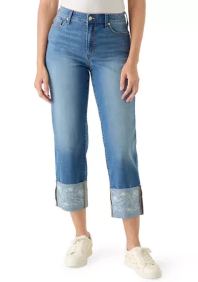 Women's High Rise Cuffed Embroidered Cropped Jeans in Chattanooga, TN