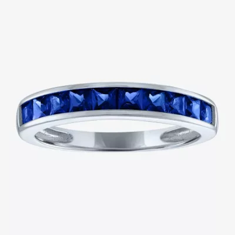 Womens Lab Created Blue Sapphire or Ruby Sterling Silver Stackable Ring
