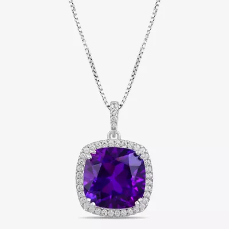 Womens Lab Created Purple Amethyst Sterling Silver Cushion 18 Inch Pendant Necklace