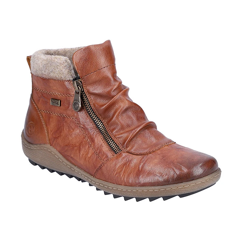 The Remonte Liv 86 ankle boot features a ruched upper, side zipper for easy on/off, wool cuff, RemonteTex to keep your feet dry and a lugged sole for extra traction.