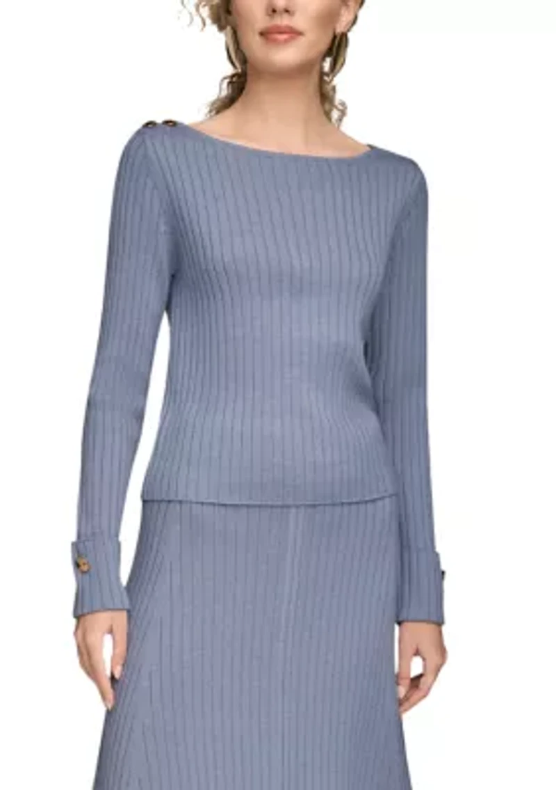 Enjoy comfort and style with this exquisitely crafted sweater from Donna Karan New York, perfect for cooler days. The luxurious wool blend ensures a soft, cozy feel, while the unique button details add a touch of sophistication. Pullover Boat neck Long sleeves Imported Product Specifications 20.75" L Material & Care Wool, acrylic Hand wash